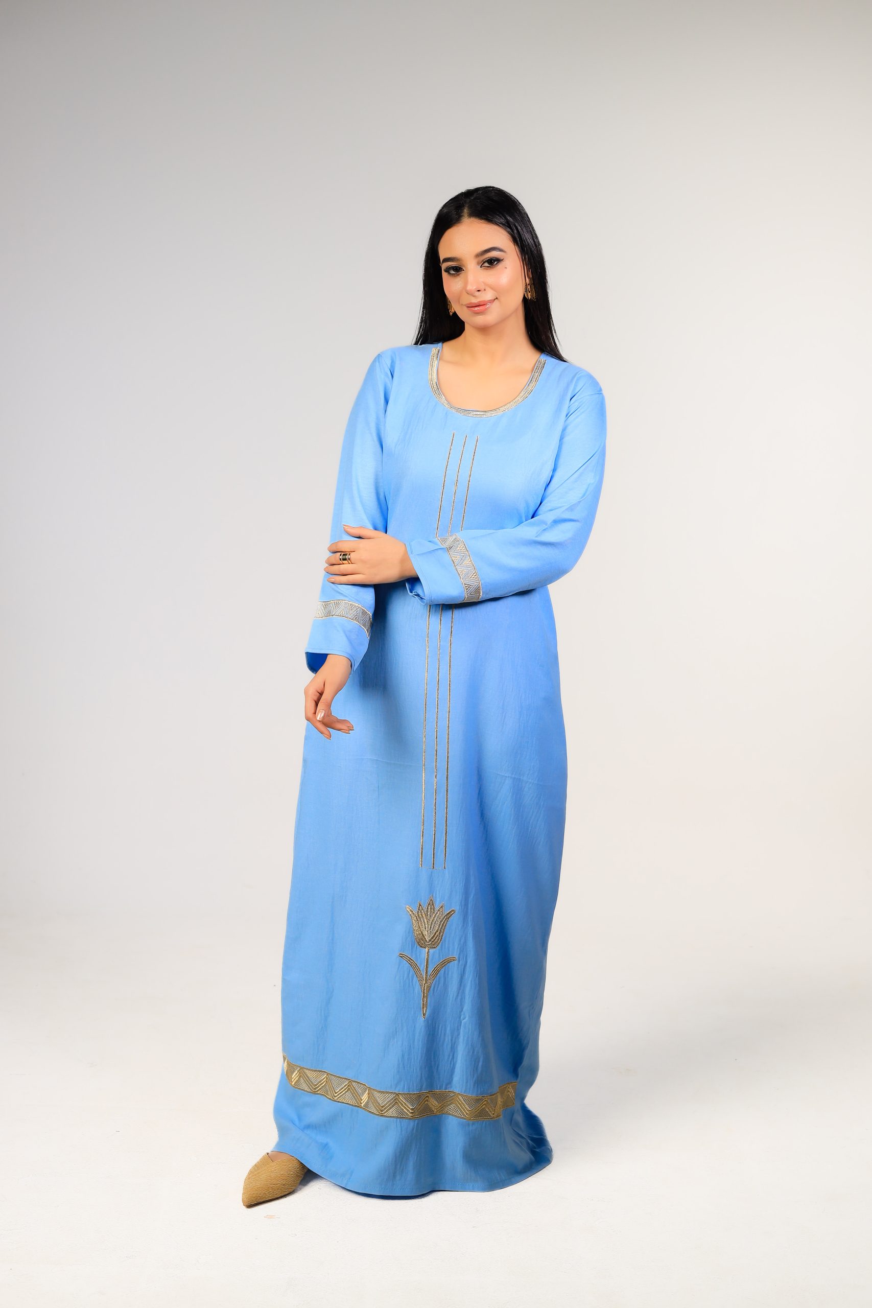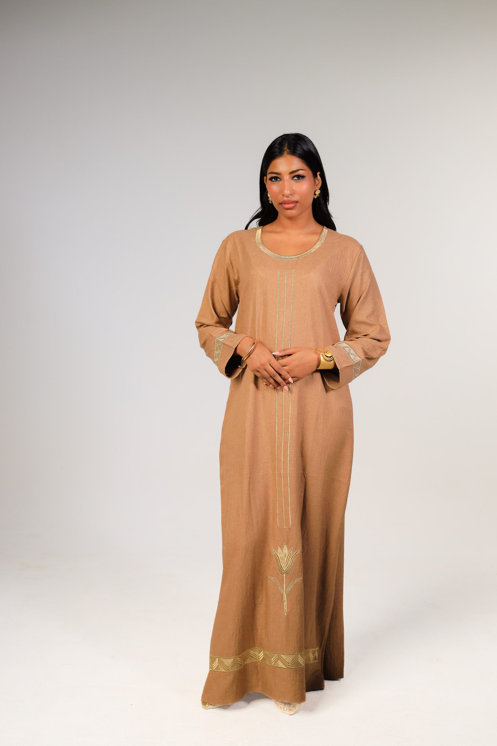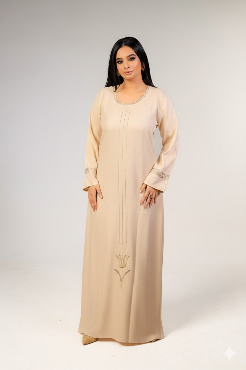 As this design features a loose-fit abaya, it provides added comfort and flexibility when worn.
